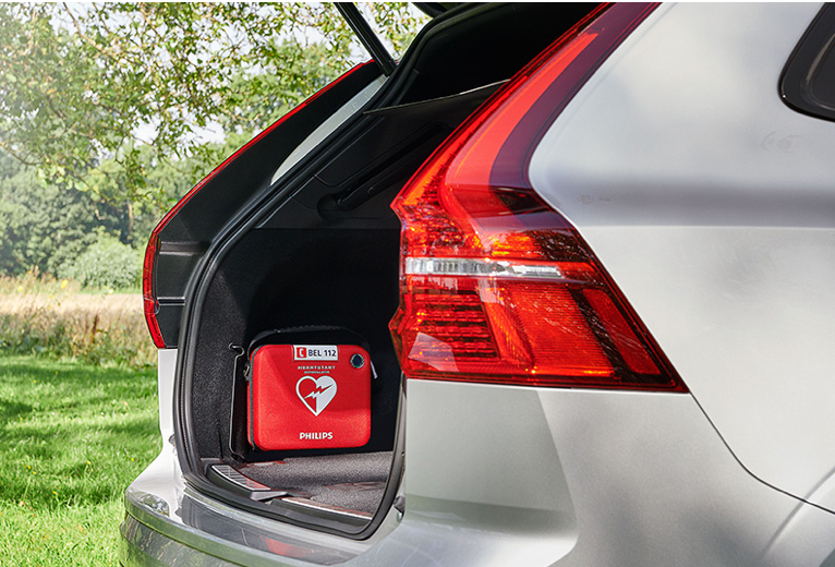 In elke nieuwe Volvo wordt een defibrilator, een AED, meegeleverd. Als iemand in de omgeving een hartaanval krijgt, krijgt de Volvo rijder een bericht (via het oproepsysteem van HartslagNu), wordt de navigatie via het Volvo On Call systeem automatisch aangepast en de auto in de richting van het probleem genavigeerd, en kan de chauffeur meteen hulp verlenen. Vaak minuten eerder dan officiële hulpinstanties. Minuten die een leven kunnen redden...